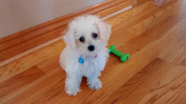 It's me, Leo! I miss you and my mom and dad but I am having a great time with my new family I am getting so big, I had a check last week and was at 6 1/2 pounds already. Then, I got my first haircut. I can actually see everybody :-) I am doing a good job with potty training and learned to follow my big furry brother Gage down the big stairs off of the deck to go out to the yard and to come back in. My mommy tells me "No" sometimes because I still like to chew on her shoes and on my human brothers and sisters hair. Mom says that I am lucky I am so cute because otherwise I would be in big big trouble. At first, my big furry brother Gage did not like me very much. He thought that I was annoying and he didn't like it when I came by him. He would run away. That made it really easy for when I wanted to steal his food. All I had to do was run up and try to nibble his foot and he was gone, big bowl of food for me! But, over the last week and a half we have become best friends! We play in the restroom all day. I don't understand why my mom tells us to be careful. I'm just as big as he is right? At least I think that I am. I beat him up all day. I jump on his head and nibble his ears and his feet, even his big old lips. But, now he likes it and plays with me too. Sometimes we play for hours and hours and then we just stop and sit and look at each other because we are too tired to play anymore. I just wanted you to know that I am doing well. Talk to you soon.