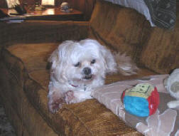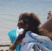 Here is a picture of Gizmo's first grooming apt. I tried to get her before she ran to the water, but she still looks cute.