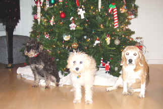 Thank you for the lovely 2006 date book you sent. We appreciate your thoughtfulness. Just wanted you to know how well our new pup is doing. We named her Gracie, and she is turning into a real Mountain dog. We got her to sit still for 1/4 of a second to snap this picture along with our other dog, Mandy, the Beagle - age 15, and our daughter's schnoodle, Lee Lou (age 2) Gracie, of course is in the middle. We just love her! Happy Holidays to you and your family! Jerry & Diane